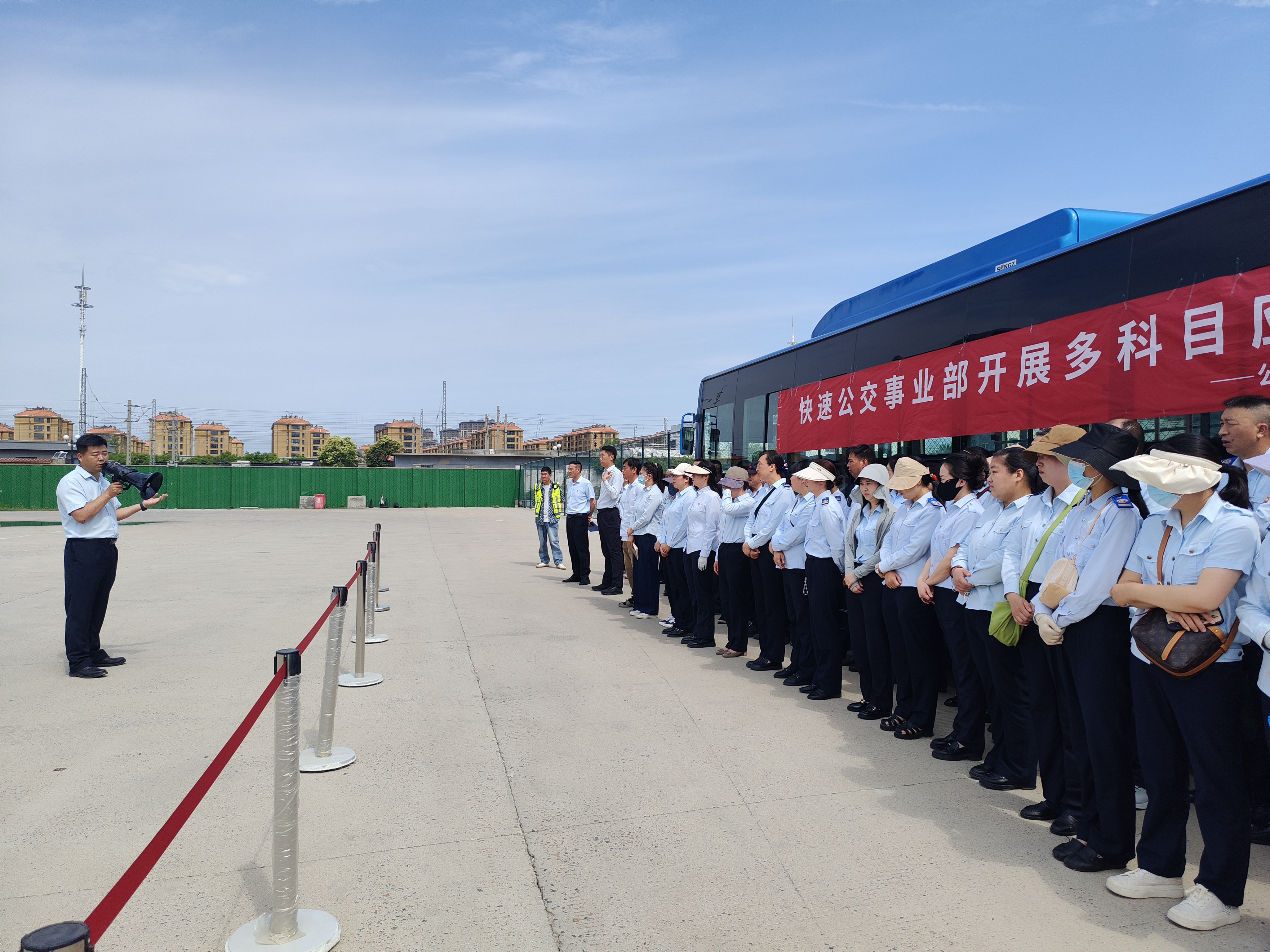 今年6月是全國第23個、全省第31個“安全生產月”,為進一步提升應對交通事故應急救援的處置能力和水平,快速、準確處置道路突發事件,提升全員避險逃生能力,6月17日上午,公交集團快速公交事業部在東城分公司場站開展交通事故應急處置演練。