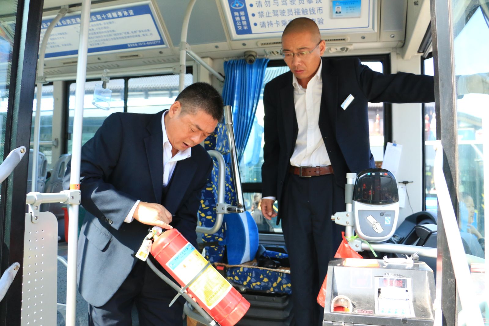 公交快速公司安全科在車隊、場站做到發現問題現場整改,做到隱患無死角,人員無遺漏;安管人員在BRT站臺除了常規檢查外還對站務員進行突發事件應急能力再培訓,務必能夠做到第一時間用正確方法處置問題;安管人員在各始發站點,利用發車間隙,檢查車輛玻璃自爆器是否安裝到位,并對車載滅火器維護情況進行檢查;公司安全經理崔建兵帶隊,對駕駛員滅火器使用方法進行抽查,并對新入職駕駛員進行再培訓。