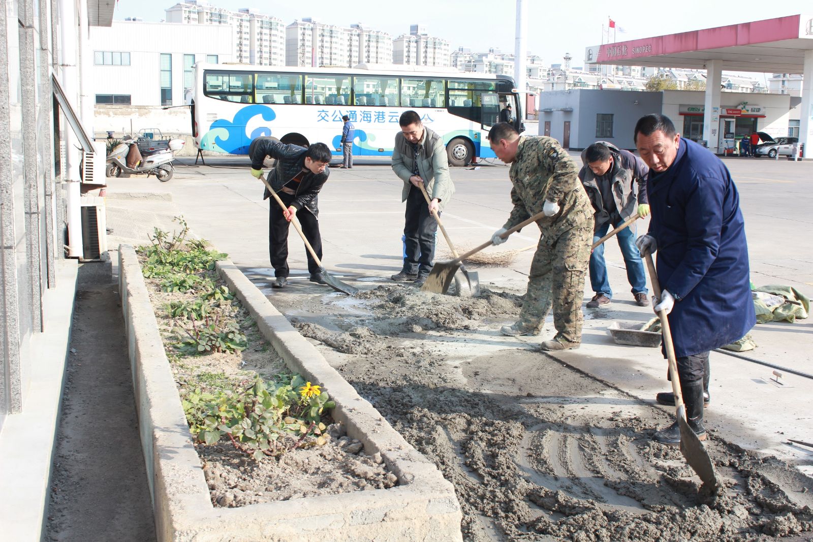 為做好創衛工作,確保責任區域干凈、整潔及美化工作環境,12月9日上午,公交東部公司開展公司總站場地面修繕工作。公司副書記寧濘、副經理張煒帶領管理人員將公司場站內多處破損的水泥地面重新修補平整。由于缺少相關材料和工具,大家獻計獻策、分工合作,有的攪拌水泥、有的用抹子將水泥面抹平……整個過程進展很順利,地面修繕效果較好。