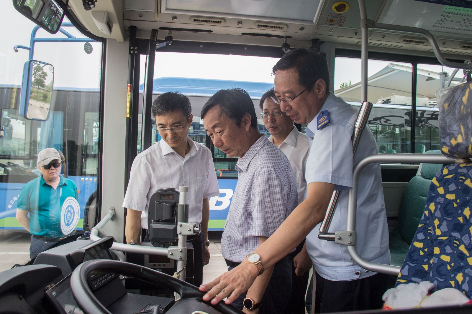 董春科一行先后來到馨海名郡、西門、漢高華威公交停車場和西城充電站,實地查看了公交場站現狀并走進公交車廂內,進一步了解掌握公交車的車型、能耗、技術狀況等,并與一線駕駛員進行了親切交談,對駕駛員的勞動強度、工作時間等問題進行了仔細詢問。