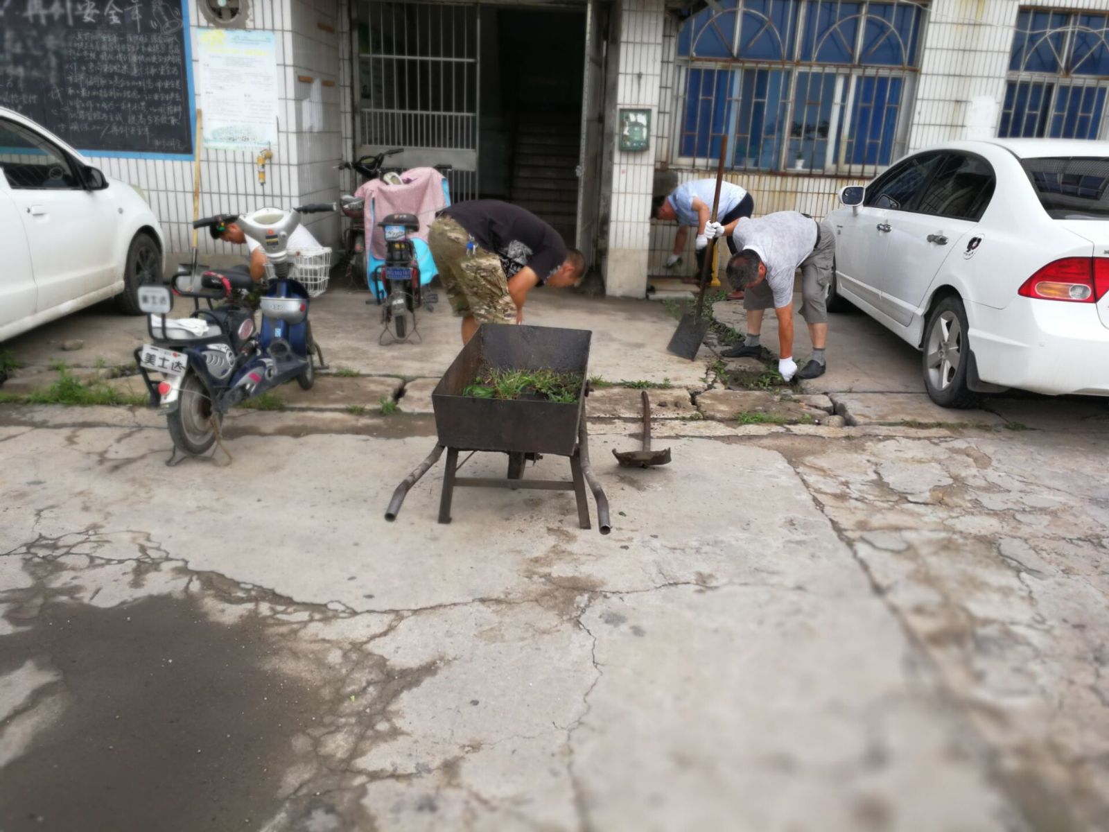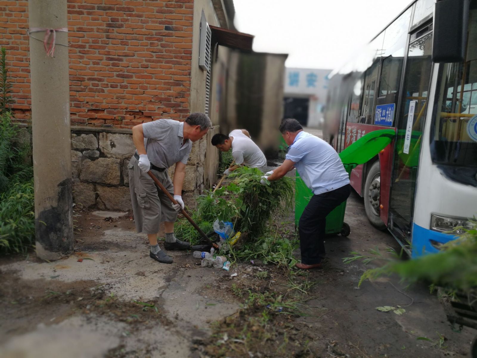 7月20日早上9點,楊國軍帶領幾名修理工,冒著酷暑,將辦公樓至修理車間周圍雜草清理干凈,用實際行動營造良好的創衛氛圍。