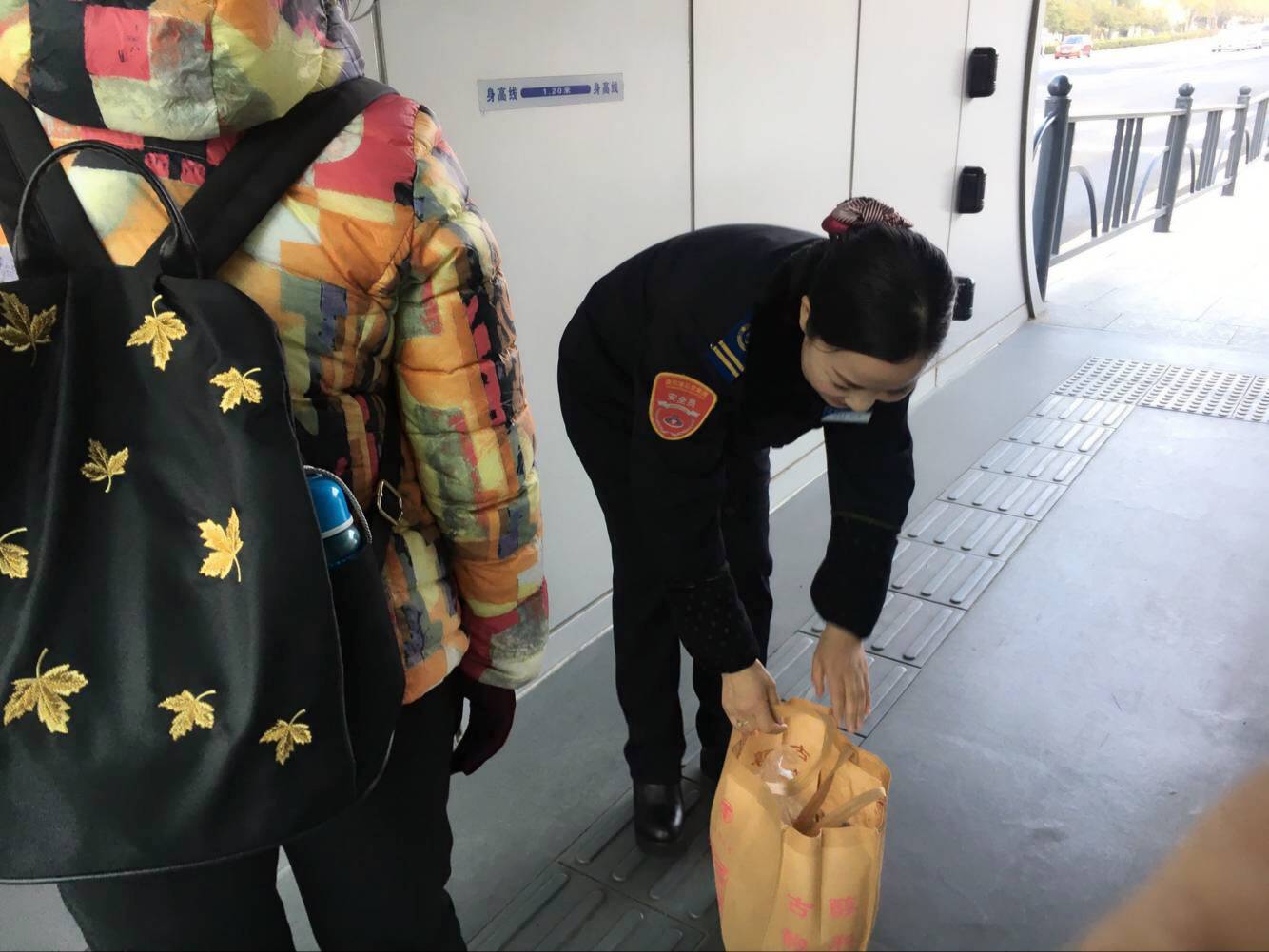 站務員在面對帶有大的行包來乘車的乘客,會嚴格遵守公司的規章制度!堅持“逢液必問,逢疑必問,逢包必查”的工作原則,不放過任何一個可疑細節。在嚴格遵守公司規章制度的同時,也要注意工作方式方法,把握好說話的技巧。每到早晚高峰時,站務員更是要認真服務。面對那些站內擁擠的人流,站務員通過語音報站來提醒乘客有序乘車,遇到不懂怎么坐車的,會耐心的和乘客說明,直到乘客明白為止。遇到那些年紀大的,需要特殊對待的乘客,我們還會寫張便條方便乘車,或者是送上車與駕駛員做好交接。