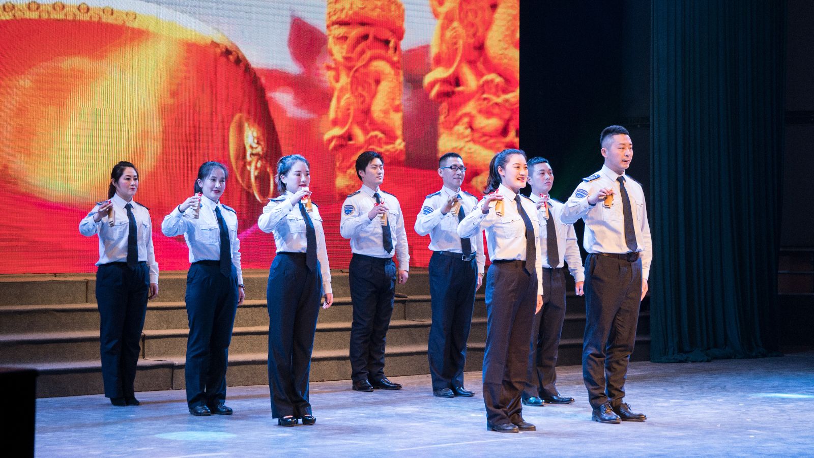 晚會(huì)開(kāi)始前,各權(quán)屬單位以飽滿的熱情展開(kāi)了拉歌活動(dòng),歌曲此起彼伏,各單位有備而來(lái),一首首耳熟能詳?shù)母枨粌H僅喚醒了公交集團(tuán)全體職工的美好回憶,嘹亮的歌聲點(diǎn)燃了在場(chǎng)所有觀眾的熱情,舞動(dòng)的國(guó)旗也將晚會(huì)的氛圍烘托地愈加濃厚。