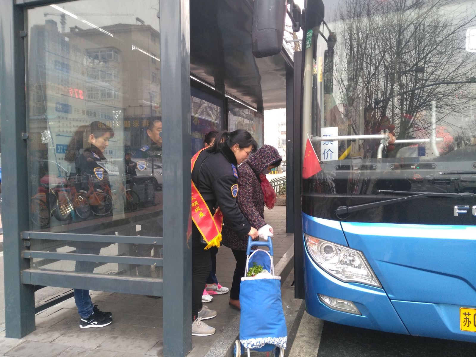 志愿者們分別來到連云港東站、購物中心南兩個客流集中的公交站點開展“文明乘車”勸導活動。活動現場,志愿者們認真指揮公交車輛進站停靠,耐心勸導乘客有序上下車,熱情攙扶行動不便的老人乘車入座,積極向廣大市民宣傳安全文明乘車。同時,志愿者們還走進車廂,積極倡導廣大乘客傳承雷鋒精神,主動為老弱病殘孕等弱勢群體讓座,營造文明車廂美好氛圍。車廂內,乘客們紛紛支持響應,并對公交志愿者們熱情周到的服務給予了高度贊譽。