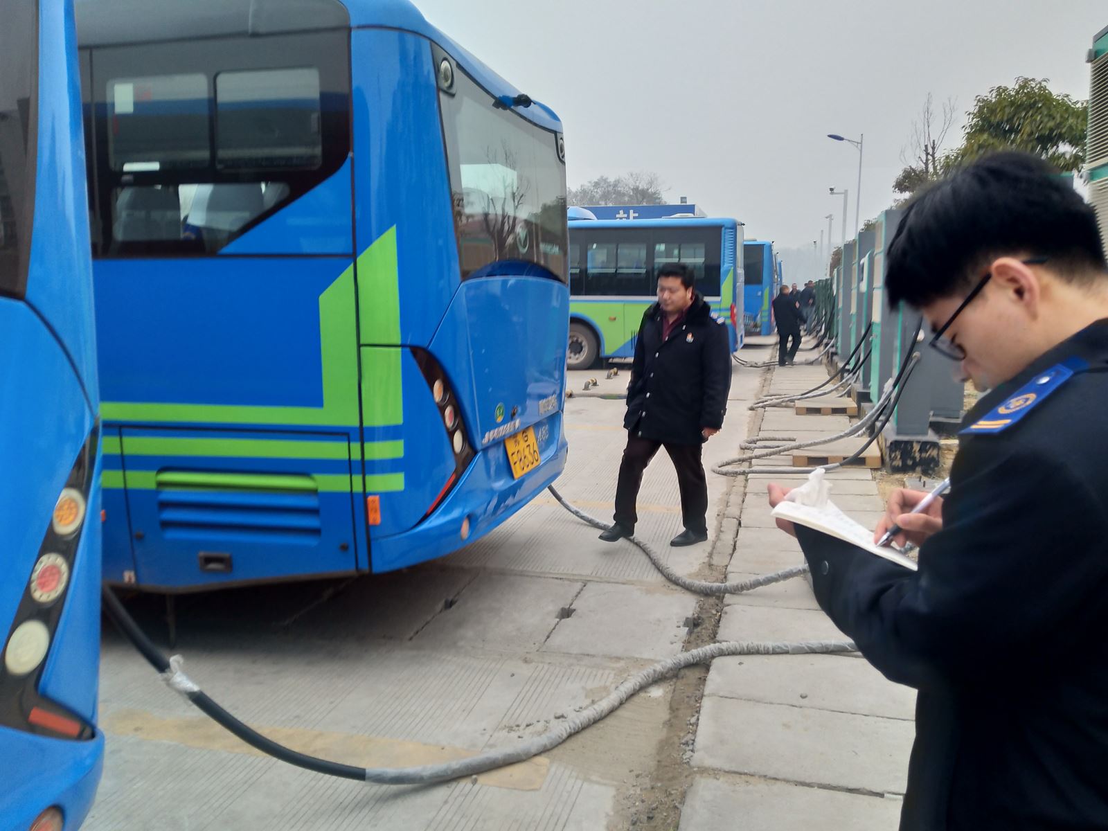 此次檢查由公交集團機務技術事業部書記許增磊帶隊,分別到西城、華威、江華北路、新華總站、公交總站以及大港路等停車場站車輛進行了檢查,對車輛的燈光、轉向、制動、電路系統、空濾、電瓶及電池艙是否存在安全隱患進行了重點排查。