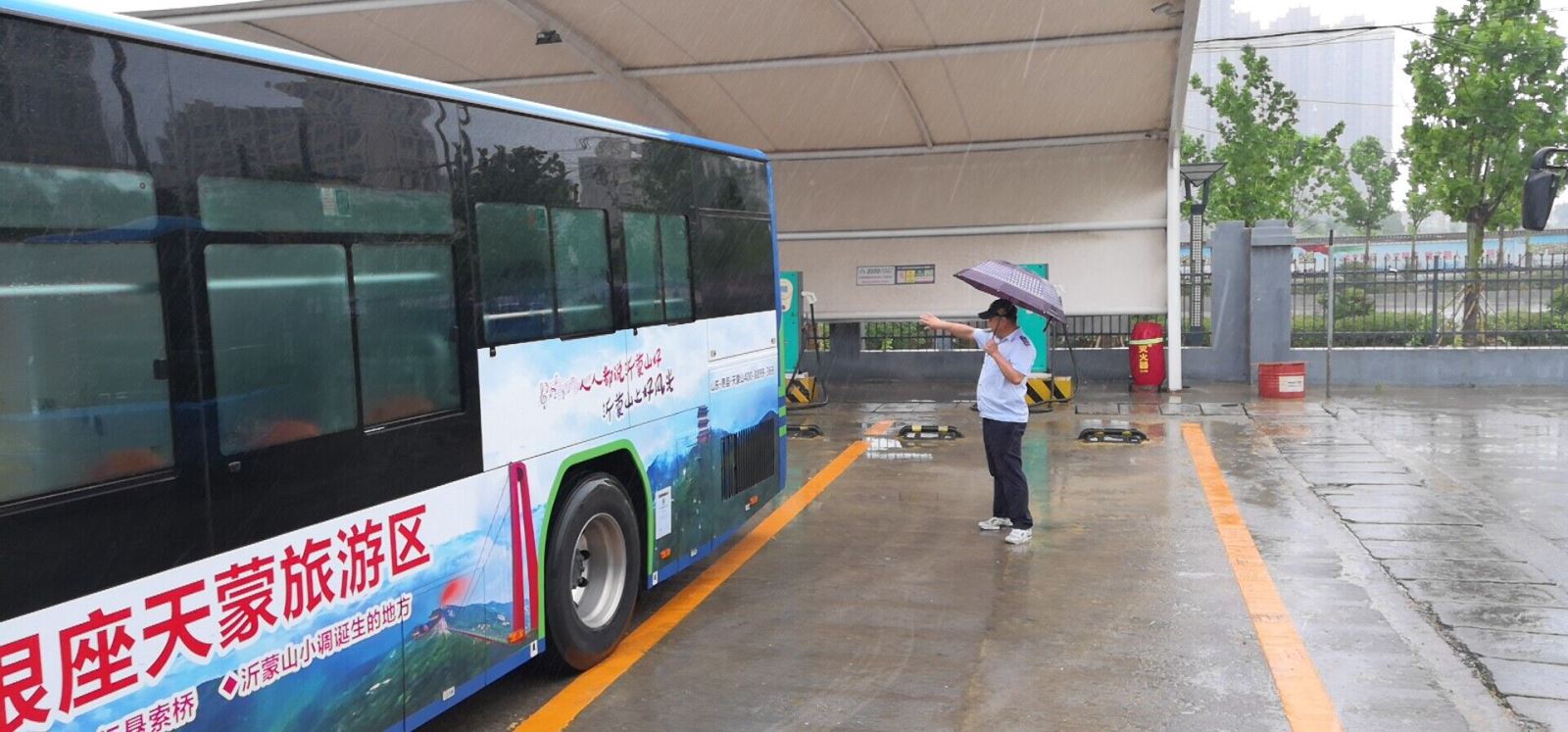 暴雨來襲,公交集團公交事業一部各級管理人員迅速到達指定崗位,清晨5:20之前,全體安管人員第一時間到達場站,對首班駕駛員進行安全交代,要求暴雨期間嚴格執行“電車涉水安全使用規范”,提醒駕駛員注意危險路段行車安全,服從指揮,并結合積水地點周邊路況靈活指揮車輛運行。首班車發出后,管理人員又迅速趕赴各易積水路段、易堵路段及充電場站對駕駛員安全運營、轉場充電進行現場指揮調度,與智能調度中心保持緊密聯系,隨時通報積水狀況和公交車輛線路調整繞行情況。