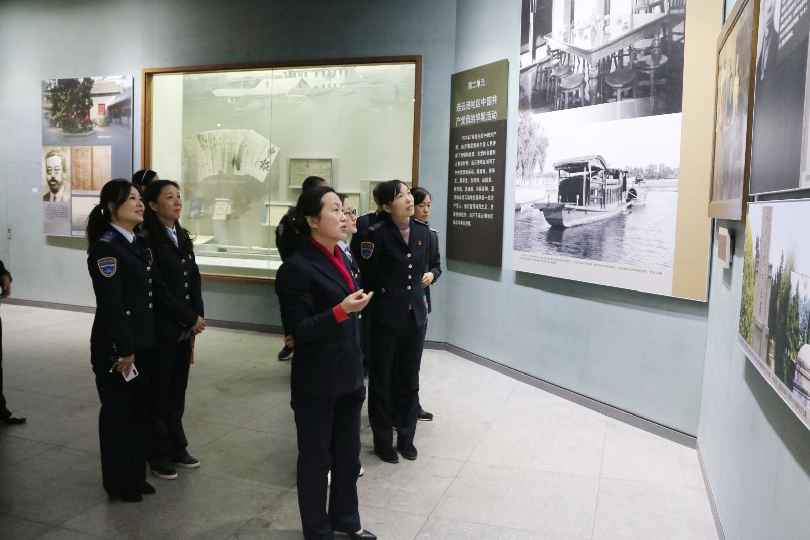 在革命紀念館展館大廳,同志們列隊肅穆,在黨旗的見證下,重溫入黨誓詞,莊嚴宣誓。儀式結束后,全體黨員集中參觀了一樓展廳,認真參觀及了解了早期黨組織的發展情況、土地革命時期,反帝反封建的農民武裝革命、海屬地區抗日情況等,連云港土地上早期的共產黨人、為連云港地區的革命運動做出貢獻的革命先輩、以及連云港保衛戰、小沙東海戰等發生在連云港地區的著名戰斗。